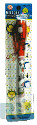 Bolígrafos, papel y cartón; productos de imprenta; material de encuadernación; fotografías; artículos de papelería y artículos de oficina, excepto muebles; adhesivos (pegamentos) de papelería o para uso doméstico; material para artistas y material de dibujo; pinceles; material de instrucción y material didáctico; hojas, películas y bolsas de materias plásticas para embalar y empaquetar; caracteres de imprenta, clichés de imprenta; goma de borrar lápiz, gomas (colas) de papelería o para uso doméstico y sacapuntas