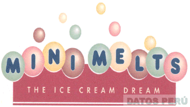 La denominación MINI MELTS escrita en letras características, apreciándose cada una de las letras dentro de figuras esféricas, en la parte superior se aprecian diversas esferas, y en la parte inferior la denominación THE ICE CREAM DREAM escrita en letras características, y debajo una línea horizontal, todo en los colores azul, verde, rosado, amarillo, marrón, rojo y blanco; conforme al modelo adjunto