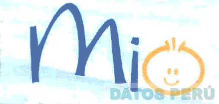 El logotipo conformado por la denominación MIO escrita en letras características, donde las letras MI son de color azul y la letra O de color amarillo en la forma estilizada del rostro de un bebé, con un fondo blanco y celeste; conforme al modelo adjunto
