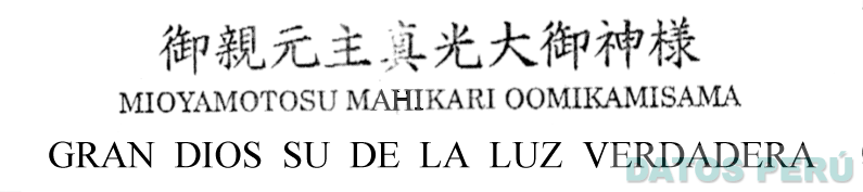 MIOYAMOTOSU MAHIKARI OOMIKAMISAMA GRAN DIOS SU DE LA LUZ VERDADERA