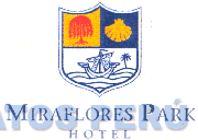 El logotipo conformado por la figura de un escudo de tres cuerpos, en cuya parte superior izquierda se encuentra la figura de un árbol; en la parte superior derecha la figura de una concha y en la parte inferior la figura de un barco navegando, debajo la denominación MIRAFLORES PARK HOTEL escrita en letras características, todo en los colores azul, rojo, mostaza y blanco; conforme al modelo adjunto