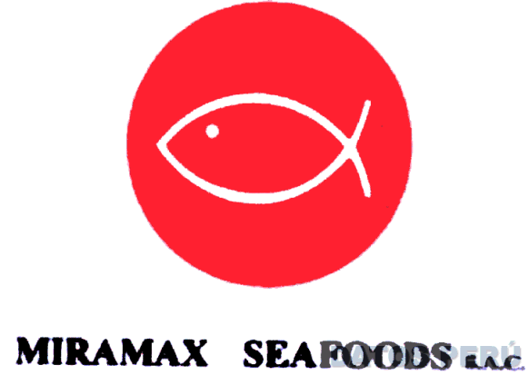 La denominación MIRAMAX SEAFOODS S.A.C. escrita en letras características, en la parte superior se aprecia una figura circular que contiene en su interior la representación estilizada de un pez, todo en los colores rojo, negro y blanco; conforme al modelo adjunto