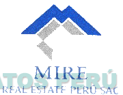 La denominación MIRE REAL ESTATE PERÚ SAC y logotipo (se reivindican colores), conforme al modelo