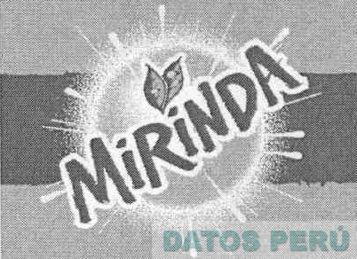 LA ETIQUETA CONSTITUIDA POR LA DENOMINACION MIRINDA ESCRITA EN LETRAS CARACTERISTICAS, ENCIMA DE LA CUAL APARECEN DOS HOJAS SUPERPUESTAS Y DETRÁS UNA ESFERA QUE SE ENCUENTRA SOBRE UNA FRANJA; CONFORME AL MODELO ADJUNTO