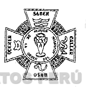 El logotipo conformado por una cruz, en cuyo centro aparece la denominación MISION DE LA ORDEN DEL ACUARIUS escrita en letras características y la representación de una copa, en cada uno de sus extremos aparece las palabras SABER, QUERER, OSAR y CALLAR escrita en letras características y los símbolos correspondientes a los signos zodiacales de acuario, leo, tauro y escorpio, detrás aparece una figura circular; conforme al modelo adjunto.
