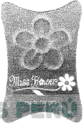 La etiqueta de forma irregular conteniendo la denominación MISS FLOWER escrita en letras características, apreciándose la representación de la letra O formada por una flor, subrayado por la figura de una flor, y en el fondo la representación de varias flores y la frase MADE FOR GIRLS, todo en los colores blanco y negro; conforme al modelo adjunto