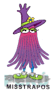 El logotipo conformado por la representación humanizada de un trapeador y la denominación MISSTRAPOS escrita en letras características; en los colores morado en distintas tonalidades, amarillo, azul, negro, verde, blanco y gris; conforme al modelo adjunto