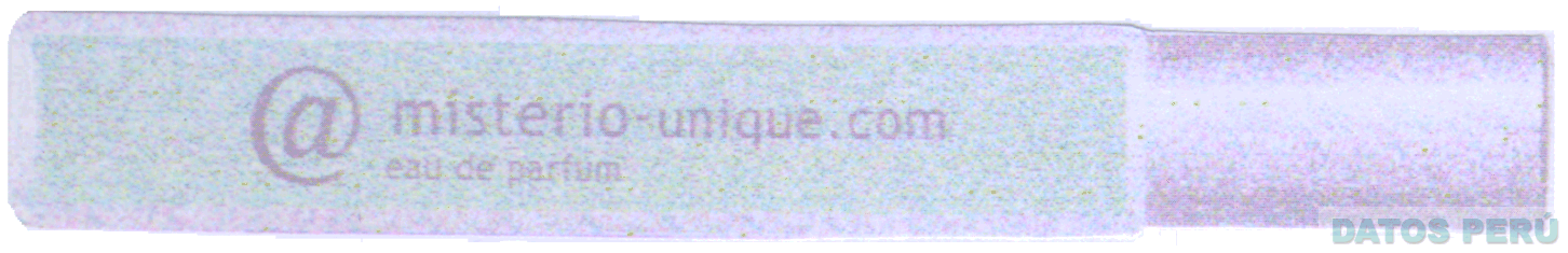 LA DENOMINACION @MISTERIO-UNIQUE.COM ESCRITA EN CARACTERES ESTILIZADOS, CONTENIDA DENTRO DE UNA FIGURA QUE REPRESENTA UN ENVASE, COLOR VERDE AGUA Y LILA; CONFORME AL MODELO ADJUNTO,