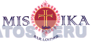 El logotipo conformado por la denominación MISTIKA escrita en letras características cuya letra T se encuentra representada por la figura de una cruz al interior de una figura circular con aplicación al contorno y debajo la denominación BAR LOUNGE escrita en letras características; todo en los colores morado, rojo y dorado; conforme al modelo adjunto.