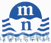 El logotipo conformado por la denominación MN EDITORIAL escrita en letras características en donde las letras M y N se encuentran dentro de un círculo y separados por una línea ondulante; asimismo en el fondo se aprecian diversas líneas ondulantes; en los colores azul y blanco; conforme al modelo adjunto