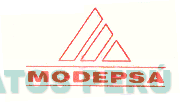 El logotipo conformado por la denominación MODEPSA escrita en letras características entre dos líneas paralelas y en la parte superior se aprecia la figura estilizada de un triángulo, todo en los colores rojo y blanco; conforme al modelo adjunto