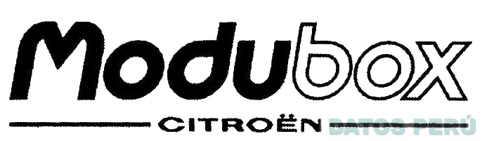 La denominación MODUBOX escrita en letras características y debajo la palabra CITROËN escrita en letras características acompañada de dos líneas rectas (sin reivindicar colores); conforme al modelo adjunto