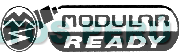 La denominación MODULAR READY escrita en letras características dentro de un círculo y separadas por una línea horizontal, al lado izquierdo un círculo y dentro líneas en zig zag, todo en la combinación de colores negro y blanco; conforme al modelo adjunto