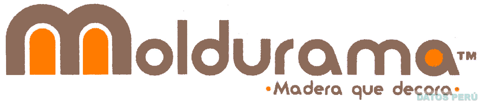 El logotipo conformado por la denominación MOLDURAMA escrita en letras características debajo la frase MADERA QUE DECORA escrita en letras características entre dos puntos, todo en la combinación de colores marrón (C