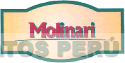 El logotipo conformado por la denominación MOLINARI escrita en letras características con dos puntos de color verde sobre las letras I, todo dentro de una figura irregular, en la combinación de colores rojo, amarillo, crema y verde; conforme al modelo adjunto