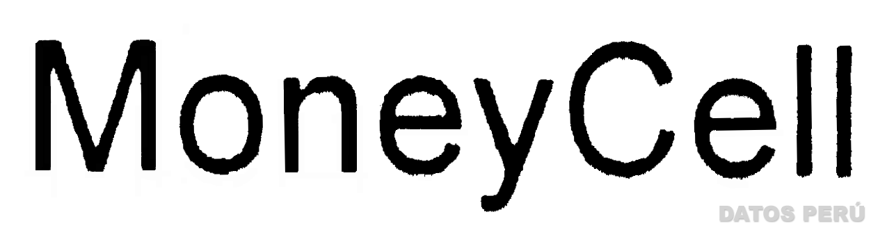 La denominación MONEYCELL escrita en letras características, donde la primera letra de cada palabra se encuentra en letras mayúsculas y las restantes en minúsculas; conforme al modelo adjunto