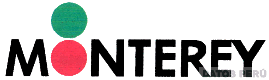 La etiqueta conteniendo la denominación MONTEREY escrita en letras características de color negro, donde la letra O está representada por la figura de un círculo de color rojo, y sobre ella otro círculo de color verde; conforme al modelo adjunto