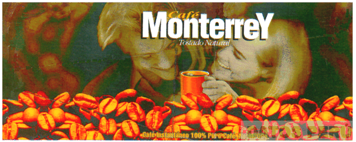 UNA ETIQUETA RECTANGULAR DE FONDO VERDE SEPIA Y TONALIDADES EN COLOR CAFE, EN CUYA PARTE SUPERIOR AL CENTRO SE APRECIA LA FIGURA DE LAS CARAS DE UN HOMBRE Y UNA MUJER SONRIENTES CON UNA TAZA DE CAFE, Y SOBRE ESTAS FIGURAS ESTA LA PALABRA CAFE EN LETRAS DE COLOR ANARANJADO Y LA DENOMINACION MONTERREY EN LETRAS DE COLOR BLANCO, DEBAJO ESTA LA EXPRESION TOSTADO NATURAL, Y EN LA PARTE INFERIOR SE APRECIA GRANOS DE CAFE EN LOS COLORES ROJO ANARANJADO, CONFORME AL MODELO ADJUNTO,