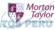 El logotipo conformado por la denominación MORTON TAYLOR TEACHING SERVICES (sin reivindicar TEACHING SERVICES) escrita en letras características; un escudo dividido en cuatro secciones conteniendo figuras irregulares y una línea irregular en la parte inferior; en los colores granate y gris en distintas tonalidades; conforme al modelo adjunto