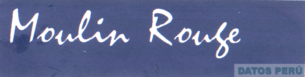LA FIGURA RECTANGULAR EN COLOR AZUL CONTENIENDO LA DENOMINACION MOULIN ROUGE ESCRITA EN LETRAS ESTILIZADAS EN COLOR BLANCO; CONFORME AL MODELO ADJUNTO