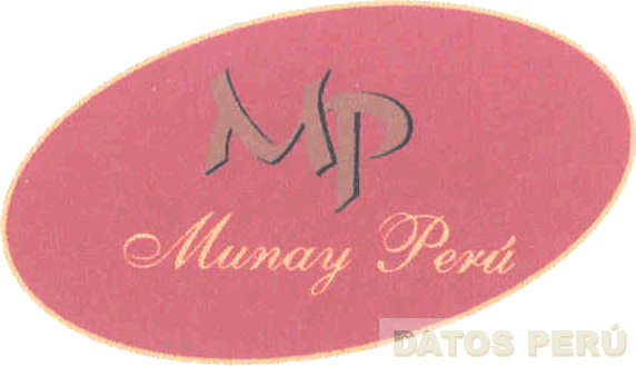 El logotipo conformado por la denominación MUNAY PERU escrita en letras características, en la parte superior se aprecian las letras MP escrita en letras características, todo dentro de una figura elíptica, en los colores amarillo, rojo, marrón y negro; conforme al modelo adjunto