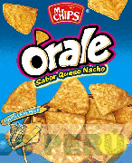 La etiqueta conformada por la denominación ÓRALE escrita en letras características, sobre la letra O se aprecia la figura de una hojuela de maíz, debajo la frase SABOR QUESO NACHO escrita en letras características (sin reivindicar), en la parte superior se aprecia la denominación MR. CHIPS escrita en letras características y dentro de una figura irregular, en la parte inferior se aprecia un letrero y las representaciones estilizadas de maíces y un queso, al lado derecho un recipiente conteniendo hojuelas de maíz y una figura irregular; y frases alusivas al producto (que no se reivindican); todo en los colores azul, celeste, rojo, blanco, negro, anaranjado, amarillo y verde; conforme al modelo adjunto