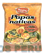 La envoltura conformada por la denominación MR. CHIPS escrita en letras características de color blanco y el punto de la letra "I" de color amarillo, dentro de una figura irregular de color rojo, enmarcada por otra figura irregular de color plateado, ambos de forma redondeada; debajo de la cual aparece la denominación PAPAS NATIVAS, escrita con letras características de color negro con bordes de color blanco dentro de una figura irregular de color amarillo con borde de color rojo; debajo de la cual aparece la figura de un plato hondo de color dorado con fondo de color marrón, conteniendo la figura de diversas hojuelas de papa de colores anaranjado, negro y amarillo; todo conforme al modelo adjunto