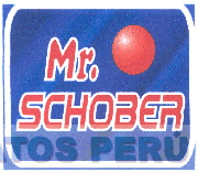 El logotipo conformado por la denominación MR. SCHOBER escrita en letras características, en la parte superior derecha se aprecia una figura circular, todo con un fondo irregular y en la combinación de colores rojo en diversas tonalidades, azul en diversas tonalidades y blanco; conforme al modelo adjunto