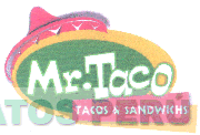 El logotipo conformado pro la denominación MR. TACO escrita en letras características sobre dos figuras elípticas superpuestas, en la parte superior izquierda la representación estilizada de un sombrero de charro, en la parte inferior izquierda la frase TACOS & SANDWICHS escrita en letras características y dentro de dos figuras rectangulares superpuestas, todo en la combinación de colores rojo, verde, amarillo, plomo, negro y blanco; conforme al modelo adjunto