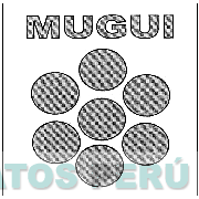 El logotipo conformado por la denominación MUGUI escrita en letras características acompañada de seis figuras circulares que forman una flor, en color gris; conforme al modelo adjunto