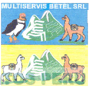 El logotipo conformado por la denominación MULTISERVIS BETEL SRL escrita en letras características debajo de la cual, se aprecian las figuras estilizadas de un cóndor, un cerro y una llama de carga, en la parte inferior se aprecian las figuras de dos llamas de carga y al medio de ellas la figura de un cerro, todo en colores celeste, amarillo, verde, anaranjado, negro, blanco y lila; conforme al modelo adjunto