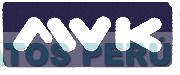 El logotipo conformado por las letras MVK escritas en forma característica sobre una figura rectangular, todo en los colores azul y blanco; conforme al modelo adjunto