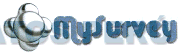 El logotipo conformado por la denominación MY SURVEY escrita en letras características y el diseño de cinco esferas sobrepuestas en cuyos interiores se aprecia el diseño de semi círculos, todo en la combinación de colores azul, gris, blanco y negro; conforme al modelo adjunto.
