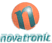 La denominación NOVATRONIC escrita en letras características, en la parte superior la figura de un círculo y la letra N estilizada con un reflejo, en los colores blanco, verde y anaranjado; conforme al modelo adjunto