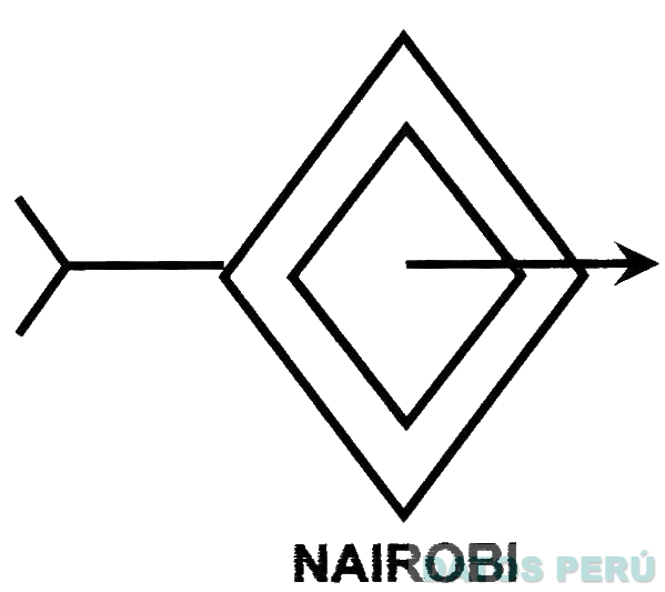 La denominación NAIROBI escrita en letras características y la figura de dos rombos atravesados por una flecha; conforme al modelo adjunto