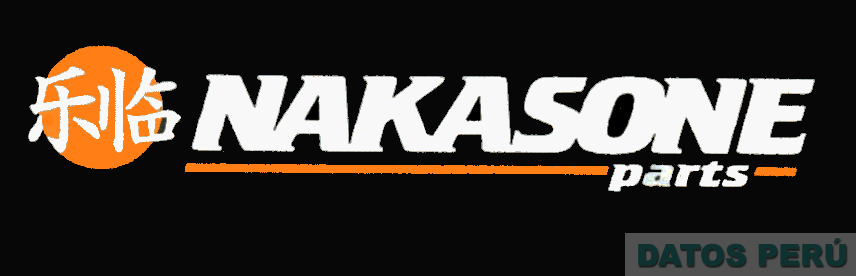 La denominación NAKASONE escrita en letras características en color blanco subrayada en color anaranjado con la palabra PARTS en color blanco y un círculo color anaranjado conteniendo unos caracteres chinos en color blanco, todo sobre fondo negro; conforme al modelo adjunto