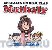 El logotipo conformado por la denominación NATHALY y sobre ella las palabras CEREALES EN HOJUELAS (sin reivindicar), en la parte inferior se aprecia el dibujo de una mamá con dos niños al costado de ella degustando un desayuno, sin reivindicar colores; conforme al modelo adjunto