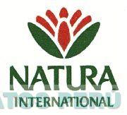 El logotipo conformado por la denominación NATURA INTERNATIONAL escrita en letras características y la representación estilizada de un capullo con hojas, todo en los colores verde y rojo; conforme al modelo adjunto
