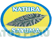 La denominación NATURA SAYUMA escrita en letras características y la figura de una hoja dentro de una figura circular, todo en los colores azul, blanco, amarillo y verde; conforme al modelo adjunto