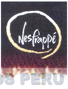 El logotipo conformado por la denominación NESFRAPPÉ escrita en letras características encerrada en una figura circular, en la parte inferior se aprecian figuras irregulares, todo en la combinación de colores negro, amarillo, blanco, marrón, gris y anaranjado; conforme al modelo adjunto