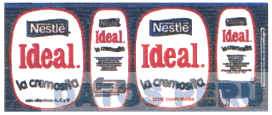 La etiqueta que contiene las denominaciones NESTLE, IDEAL y LA CREMOSITA, todo en los colores azul, blanco y rojo, conforme al modelo adjunto