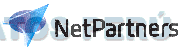 El logotipo conformado por la denominación NETPARTNERS escrita en letras características, antecedida por la figura estilizada de una flecha sobre una figura ovoide, todo en la combinación de colores azul en diferentes tonalidades, gris y blanco; conforme al modelo adjunto