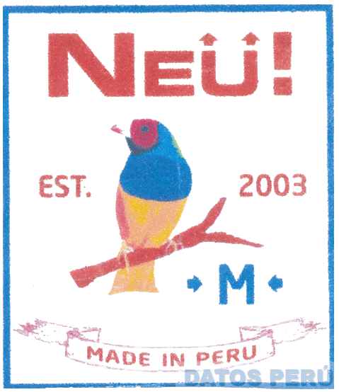 La denominación NEU! EST. 2003 M MADE IN PERU y logotipo (se reivindica colores), conforme al modelo