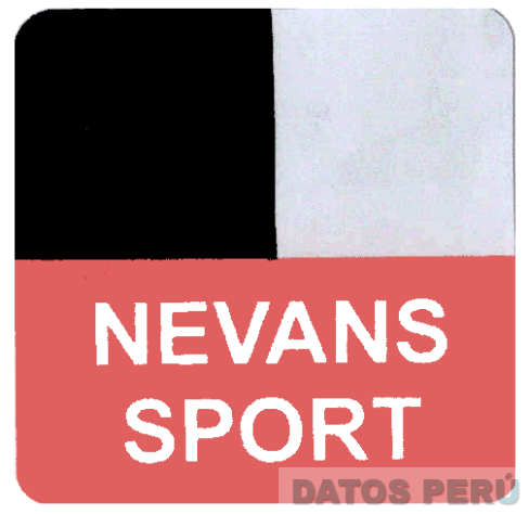 El logotipo conformado por la denominación NEVANS SPORT escrita en letras características dentro de un cuadrado dividido en dos cuadrados pequeños y un rectángulo, todo en los colores negro, blanco y rojo; conforme al modelo adjunto