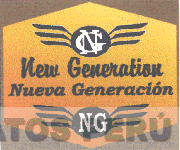 La etiqueta conformada por una figura hexagonal y dentro de ésta la denominación NEW GENERATION NUEVA GENERACION escrita en letras características y las letras NG al interior de dos figuras circulares con líneas que asemejan alas estilizadas, en los colores marrón, blanco, negro, anaranjado y amarillo; conforme al modelo adjunto