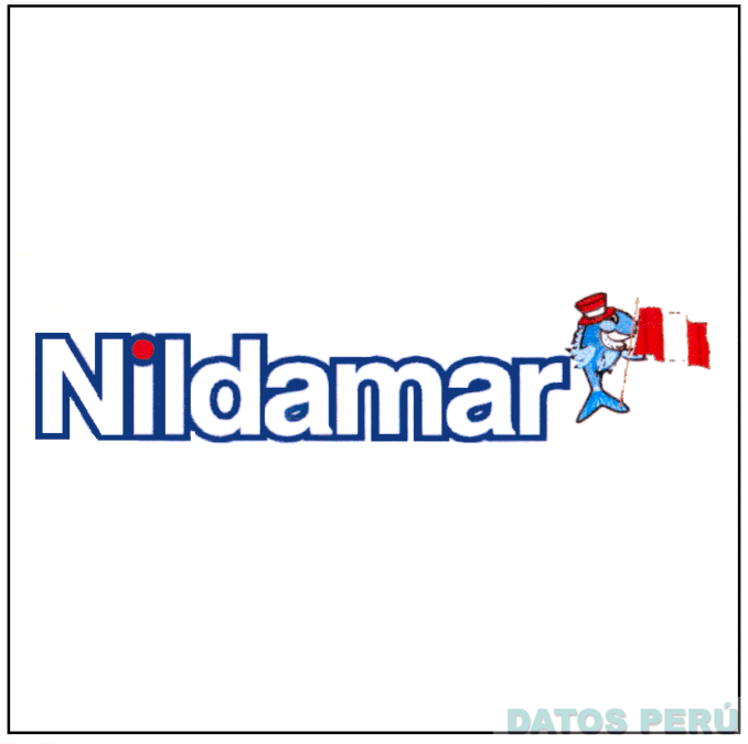 El logotipo conformado por la denominación NILDAMAR escrita en letras características, acompañada por la representación estilizada de un pez con un sombrero y una bandera del Perú (sin reivindicar), todo en los colores azul, celeste, rojo y blanco; conforme al modelo adjunto
