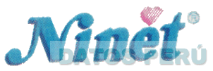 La denominación NINET escrita en letras características de color celeste y sombra azul, y un corazón de color rosado como acento, conforme al modelo adjunto