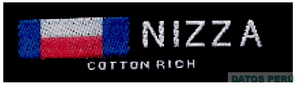 El logotipo conformado por la denominación NIZZA COTTON RICH escrita en letras características y una figura rectangular dividida en cuatro segmentos, todo en los colores azul, rojo, blanco y negro; conforme al modelo adjunto