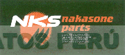 La etiqueta rectangular de fondo color negro, conteniendo la denominación NKS NAKASONE PARTS en colores blanco y anaranjado y la figura circular en color anaranjado con 3 bandas paralelas en color negro y demás palabras alusivas al producto en color blanco; conforme al modelo adjunto