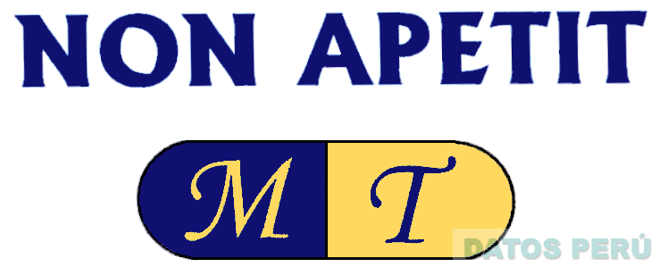 La etiqueta conformada por la denominación NON APETIT escrita en letras características, en la parte inferior se aprecia la figura estilizada de una cápsula dentro de la cual se aprecian las letras MT escritas en forma característica, en la combinación de colores amarillo, azul y negro; conforme al modelo adjunto